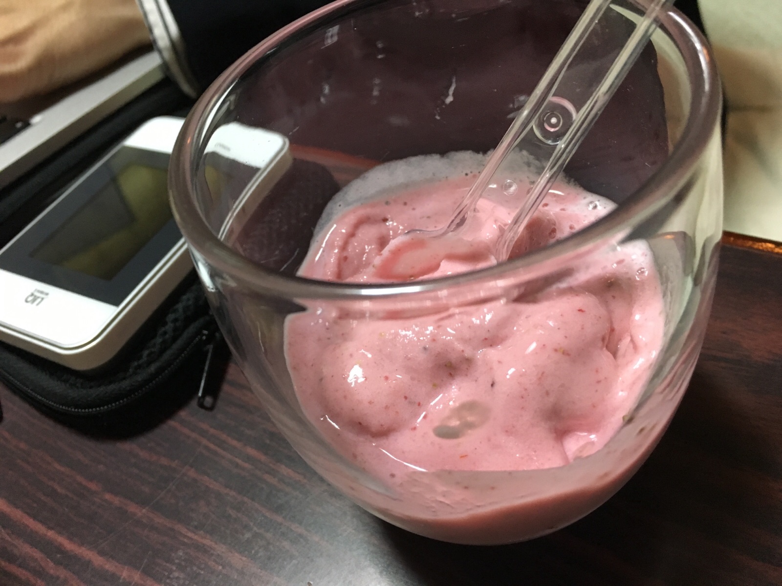 手作りの苺アイス! 凍らせた苺と砂糖と牛乳で作ったそうです。 めちゃめちゃ美味しいです! 私も今度作ってみよっと。