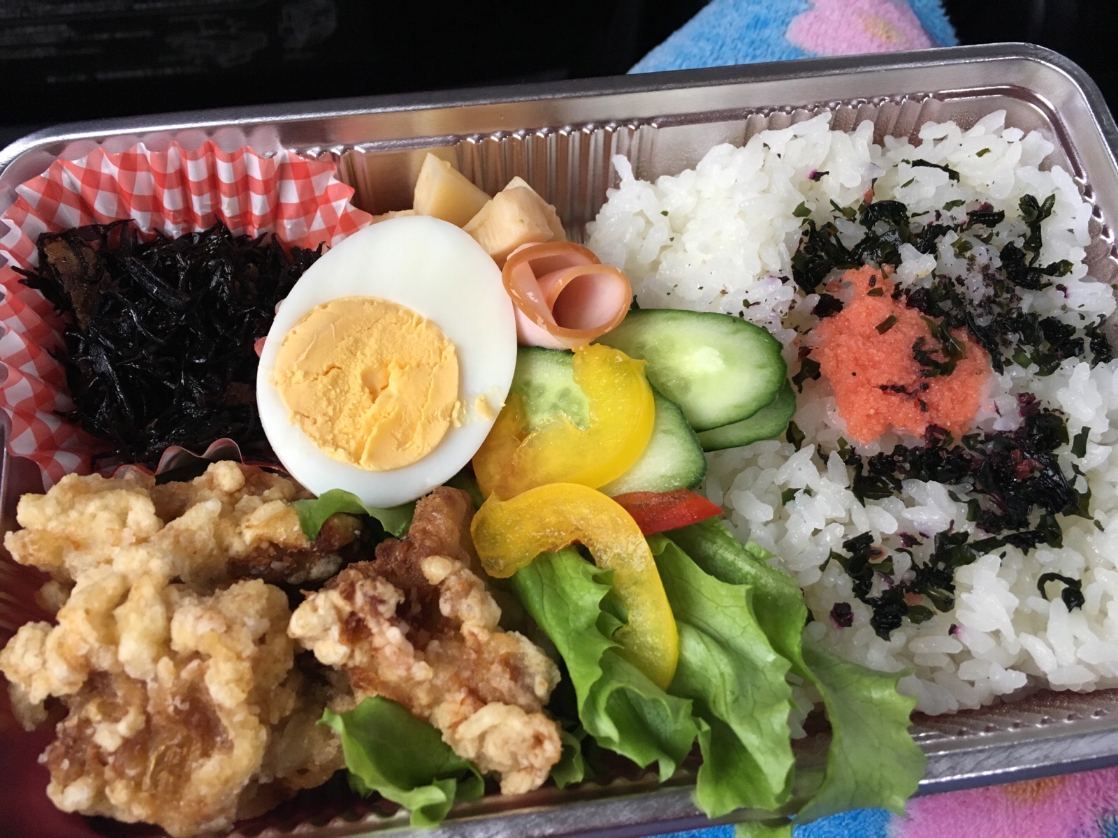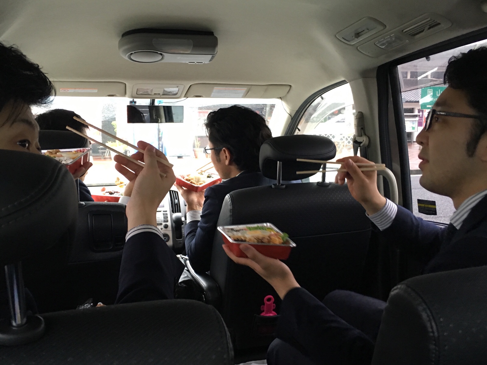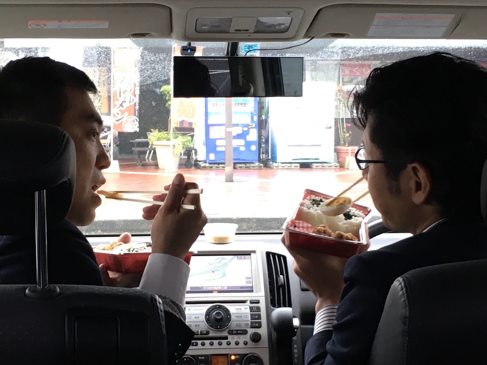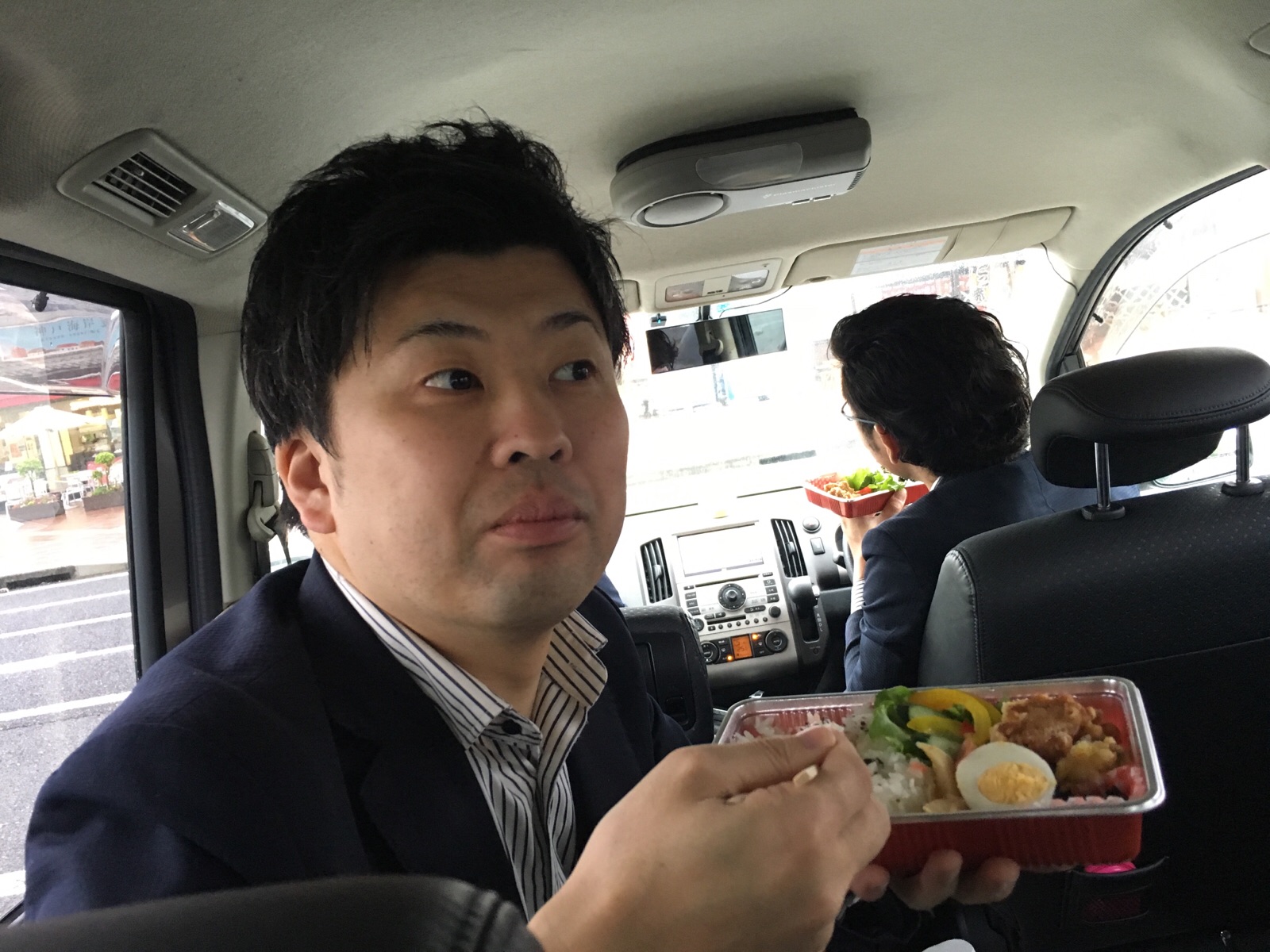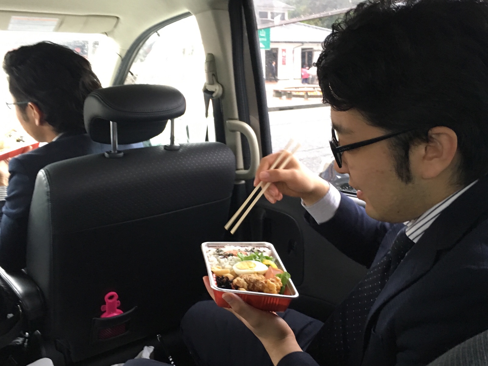 サービスエリアで、森さんの奥さん手作りのお弁当を戴いてます!