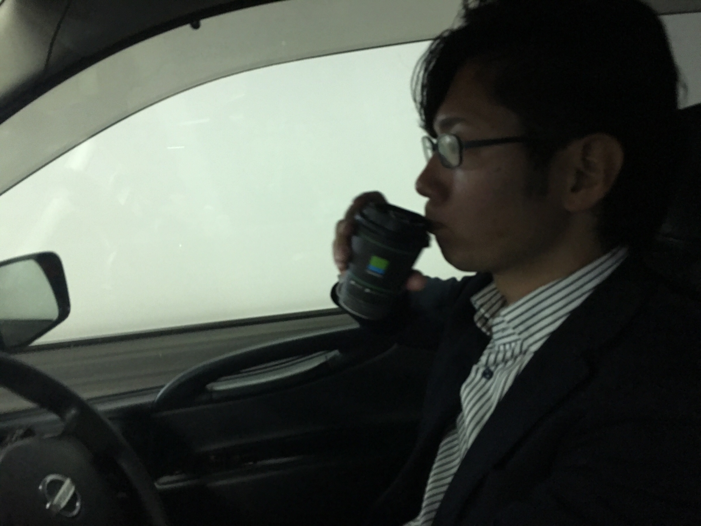 コーヒーを飲むダビデくん! 運転、頑張ってます。