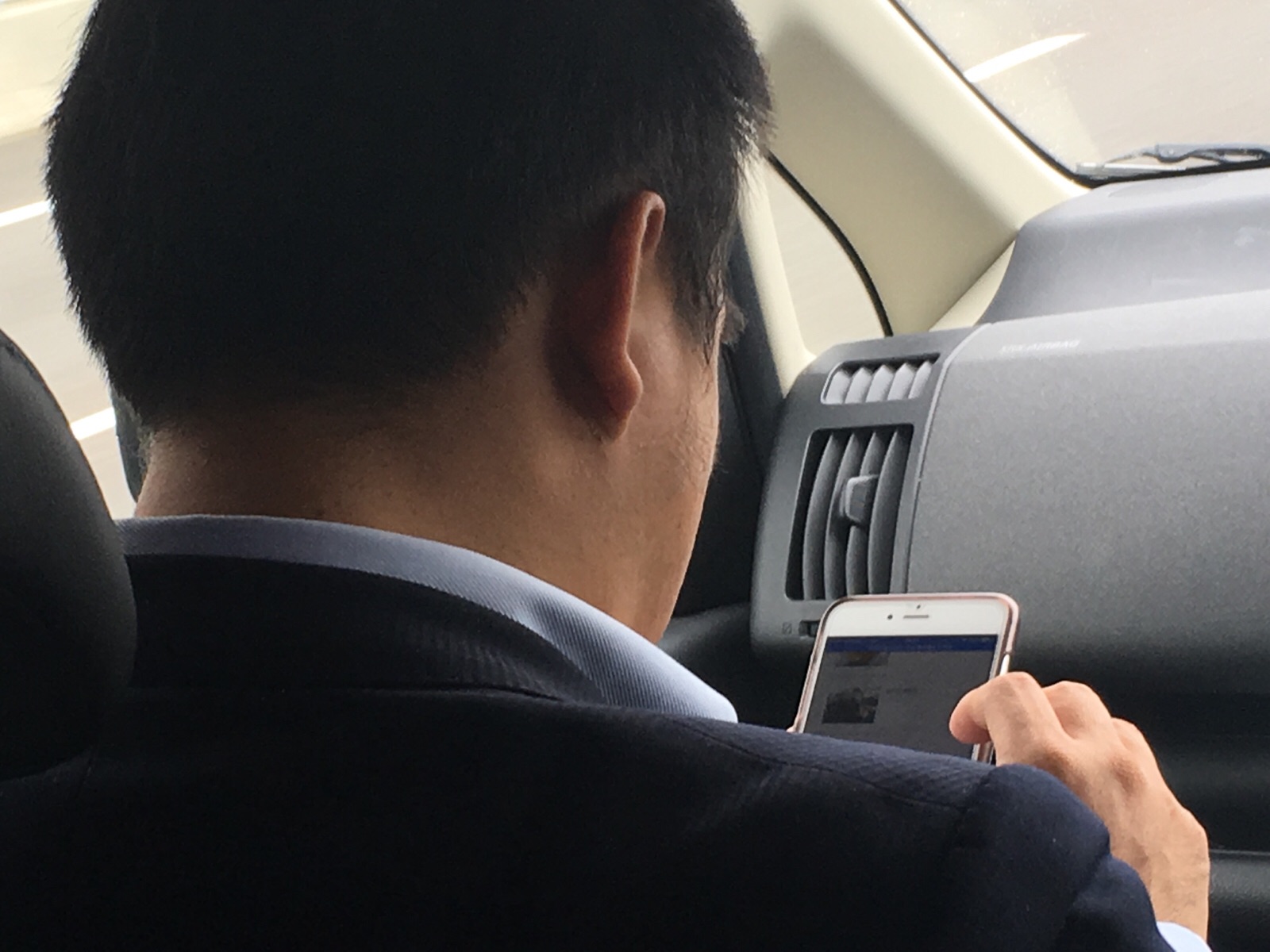 後ろでも楽しく会話中! あ、私の髪が写っちゃった〜。
