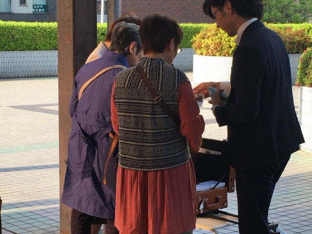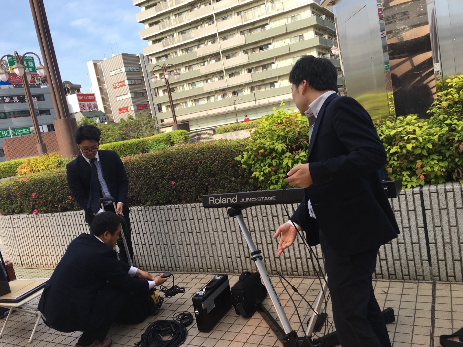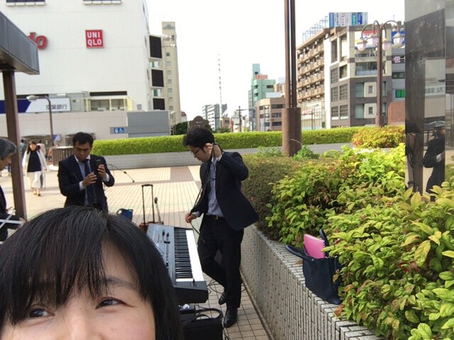 路上ライブの準備をします。 船橋駅前にて
