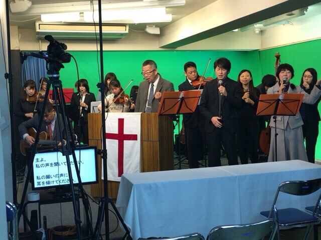 東京アンテオケ教会の牧師である秋元さんが導かれる賛美の時です。