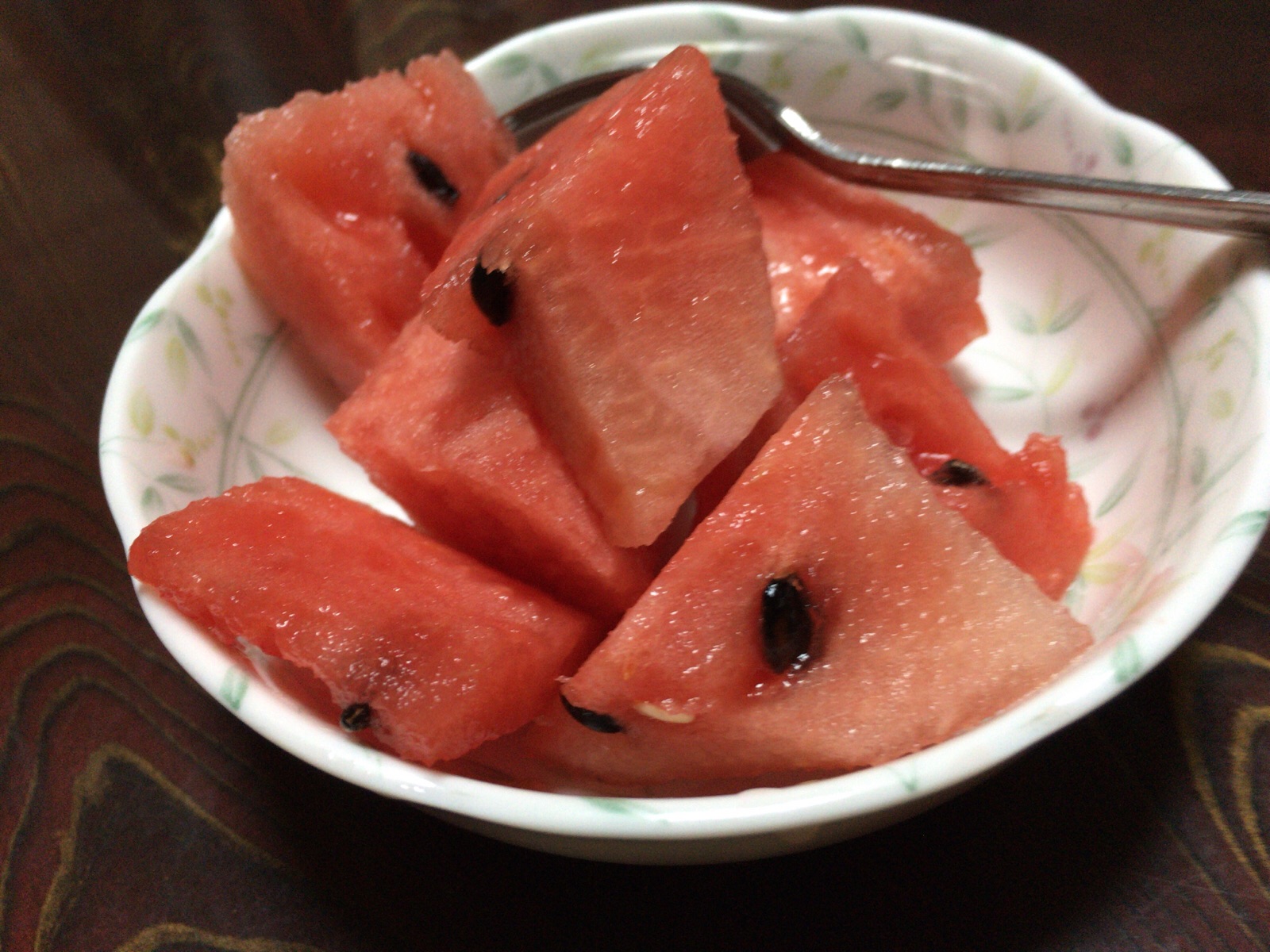 ギフツ日記を書き終えて、加藤さんに送ったところです。 ホッとして、スイカを食べてます。 Kayano