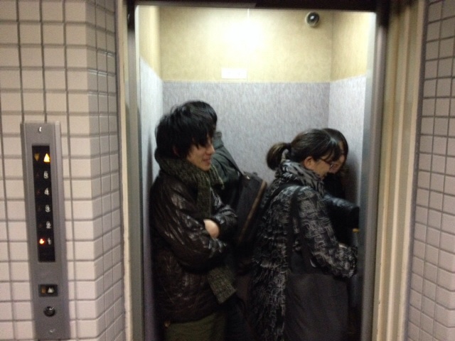 たった今、教会に着いたゴスペルシードの皆さんとエレベータでばったり。お疲れ様でした〜!