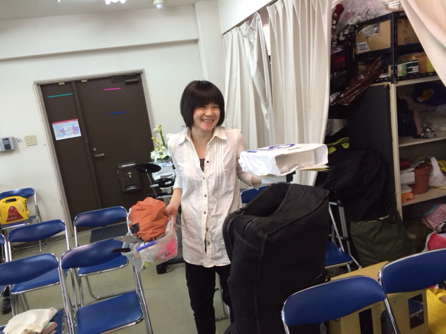 こちらでは、愛ちゃんが片ずけています。 機材置き場です。
