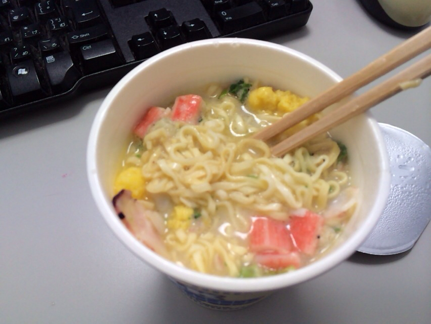 今日のお昼は忙しいので、簡単にインスタントラーメン。 しかし珍しいミルクシーフード! 食べてみたら、クリームシチューみたいで、意外に美味しいです。 Giftsの萱野