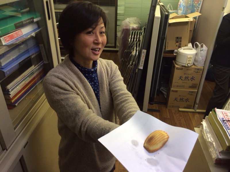 ミッション事務局からいいにおいがしたので扉を開けてみたら、マドレーヌをチンしていたみたいで、おすそ分けをいただきました!