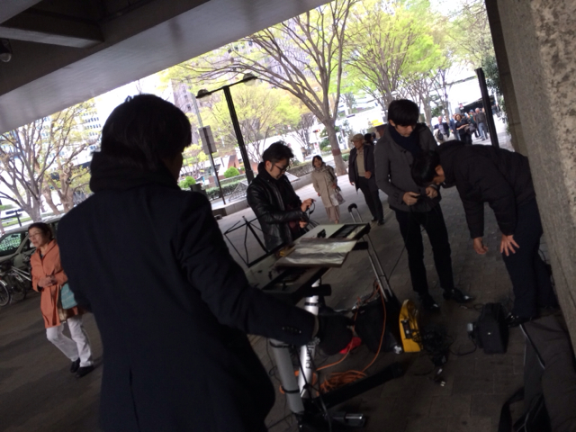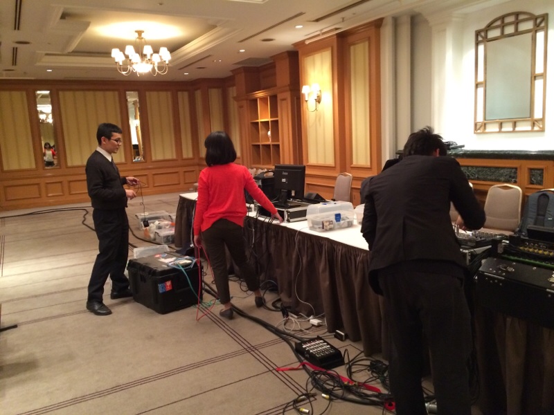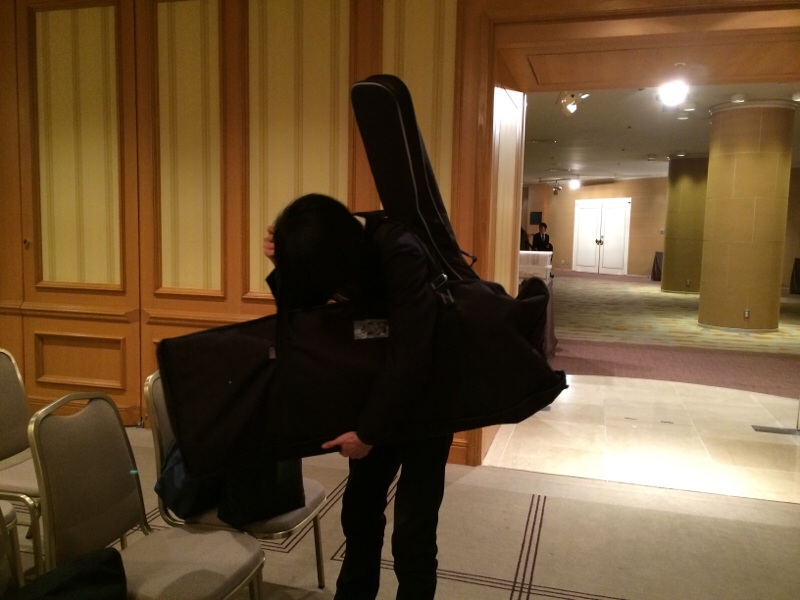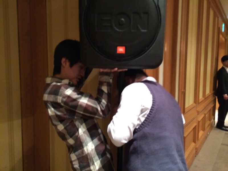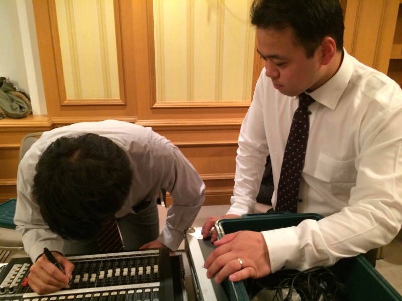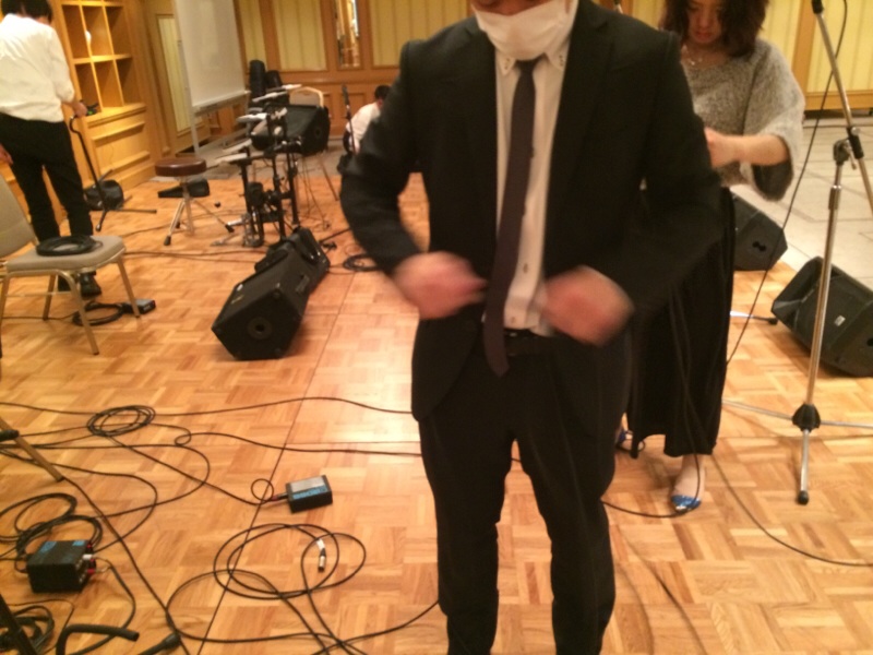 Come&Worship、Gospel Seedでベースを担当する真くんは、マイクケーブルの敷設中です。