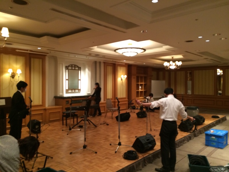カリスマ聖会の会場準備が着々進んでいます。 コンサートに向けての準備運動というところでしょうか。 でも手は抜いてません。
