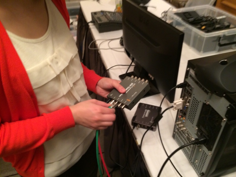唯ちゃんが映像のケーブル繋いでます。 間違えると大変なことに?