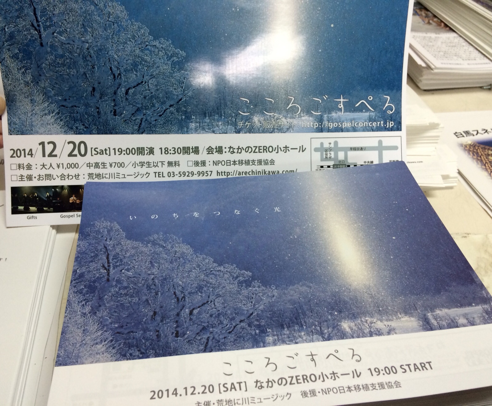 こころごすぺるのチラシが欲しい方〜、まだ会堂の受付けのとこにありますよー。