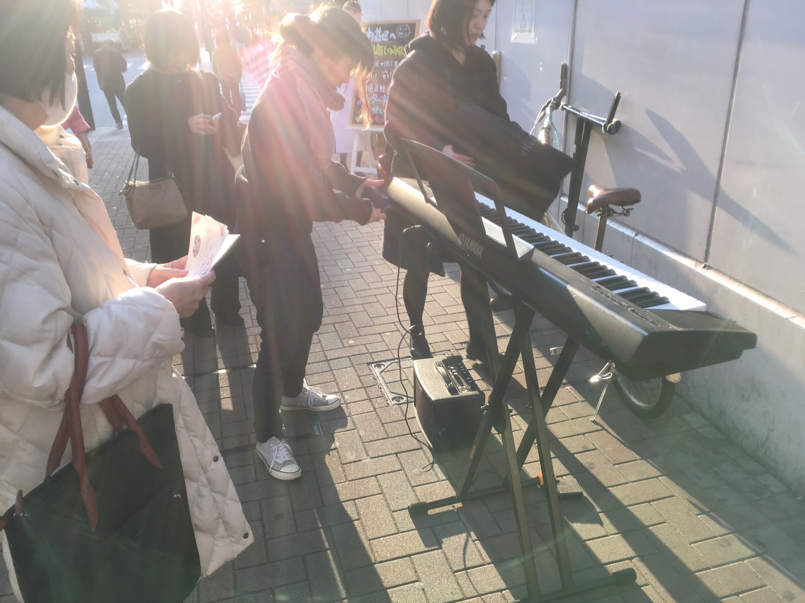 男性の方が賛美を聞いてチラシを取りに来てくださいました!