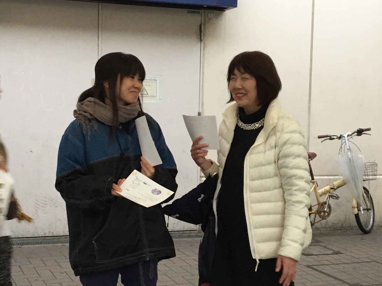 チラシをお配りしながら路上ライブ ゴスペルを聞いてくださっています♪