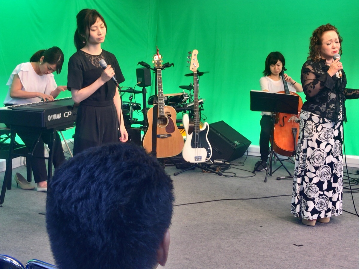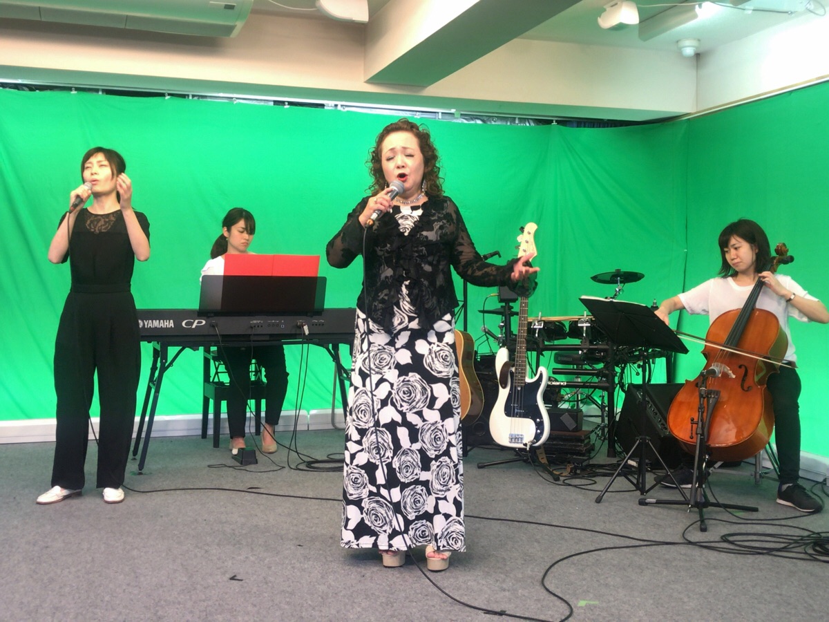サポートメンバーの方々と一緒に「大きな愛」を賛美するまりこさん。 心に響きます。