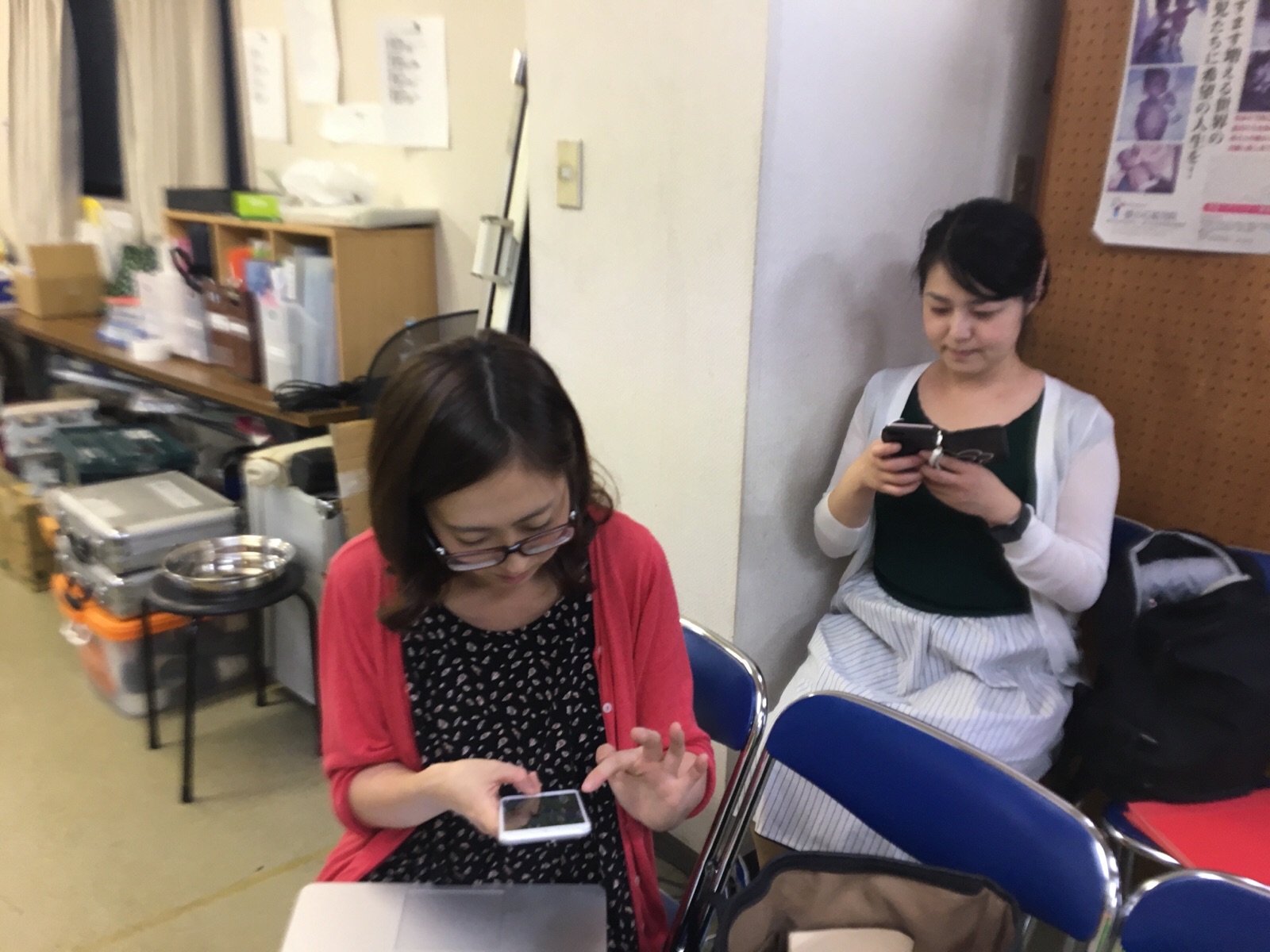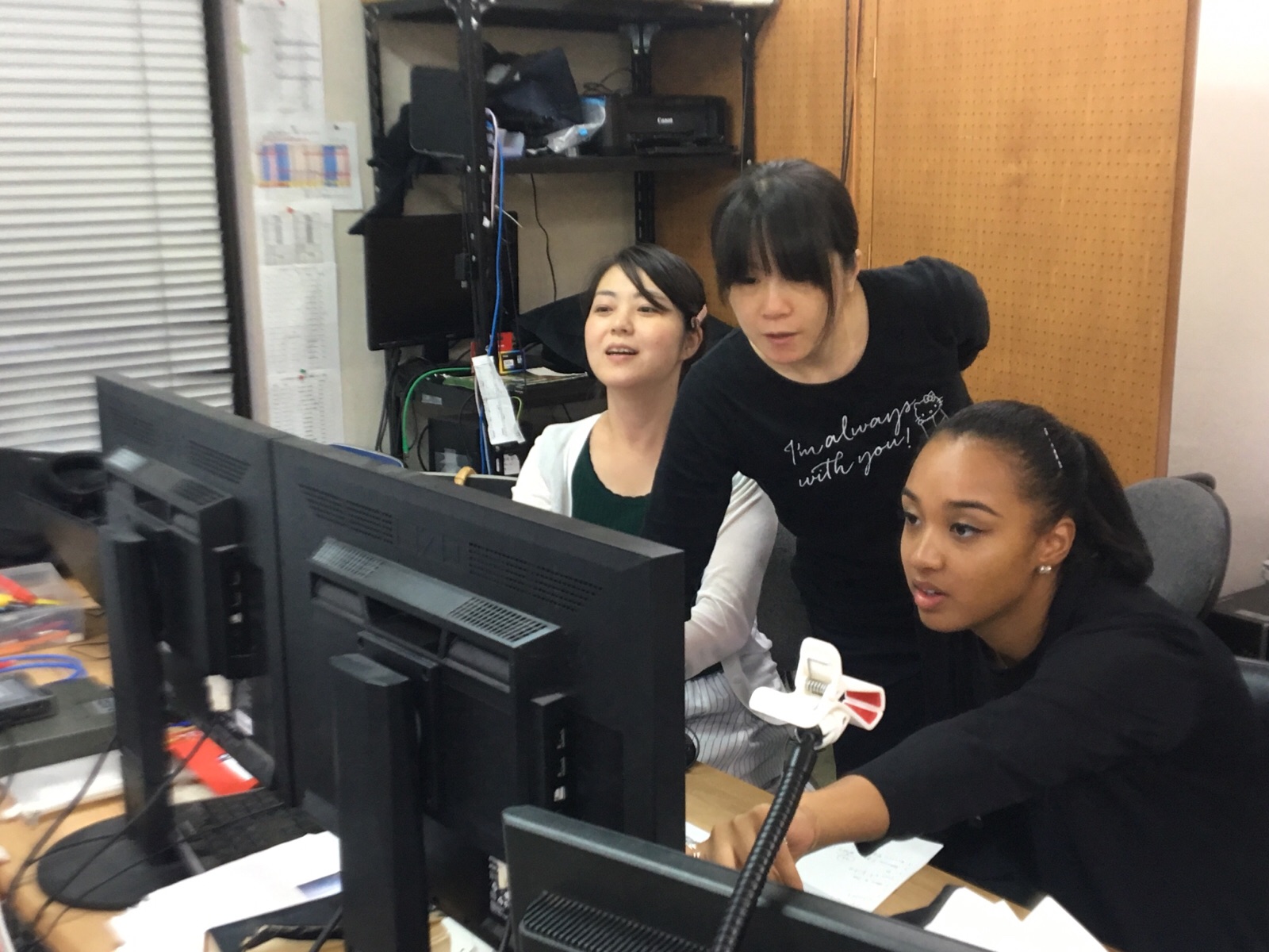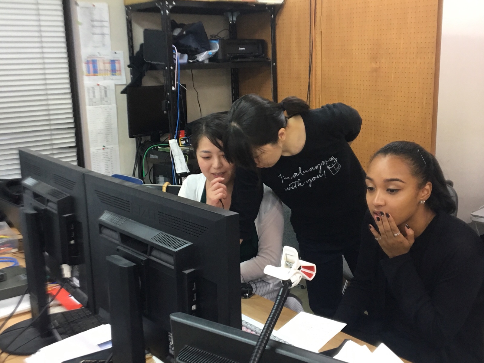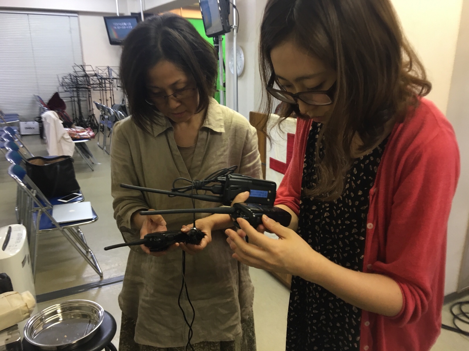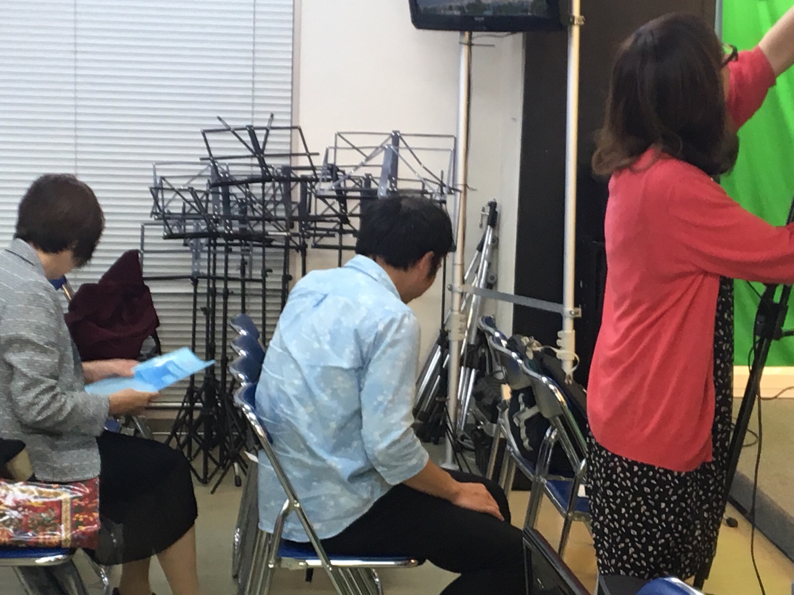 ナオミちゃんが、自分の出番の時に使うテロップや背景画像をみなさんとチェックしてます♪