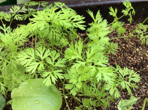 雨も上がり、秋晴れで、わが家のニンジンもすくすくと成長しています。路上、できるかな〜?
