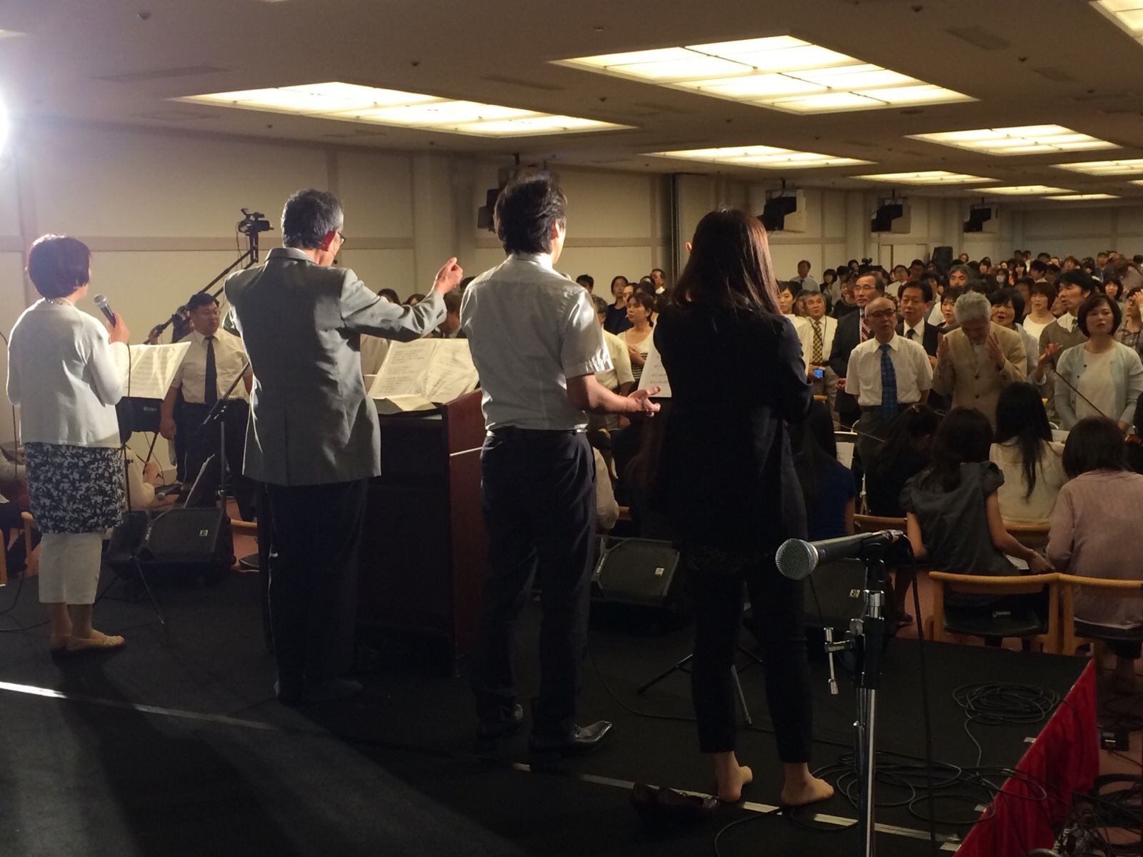 聖会では英語への同時通訳も行なっています。