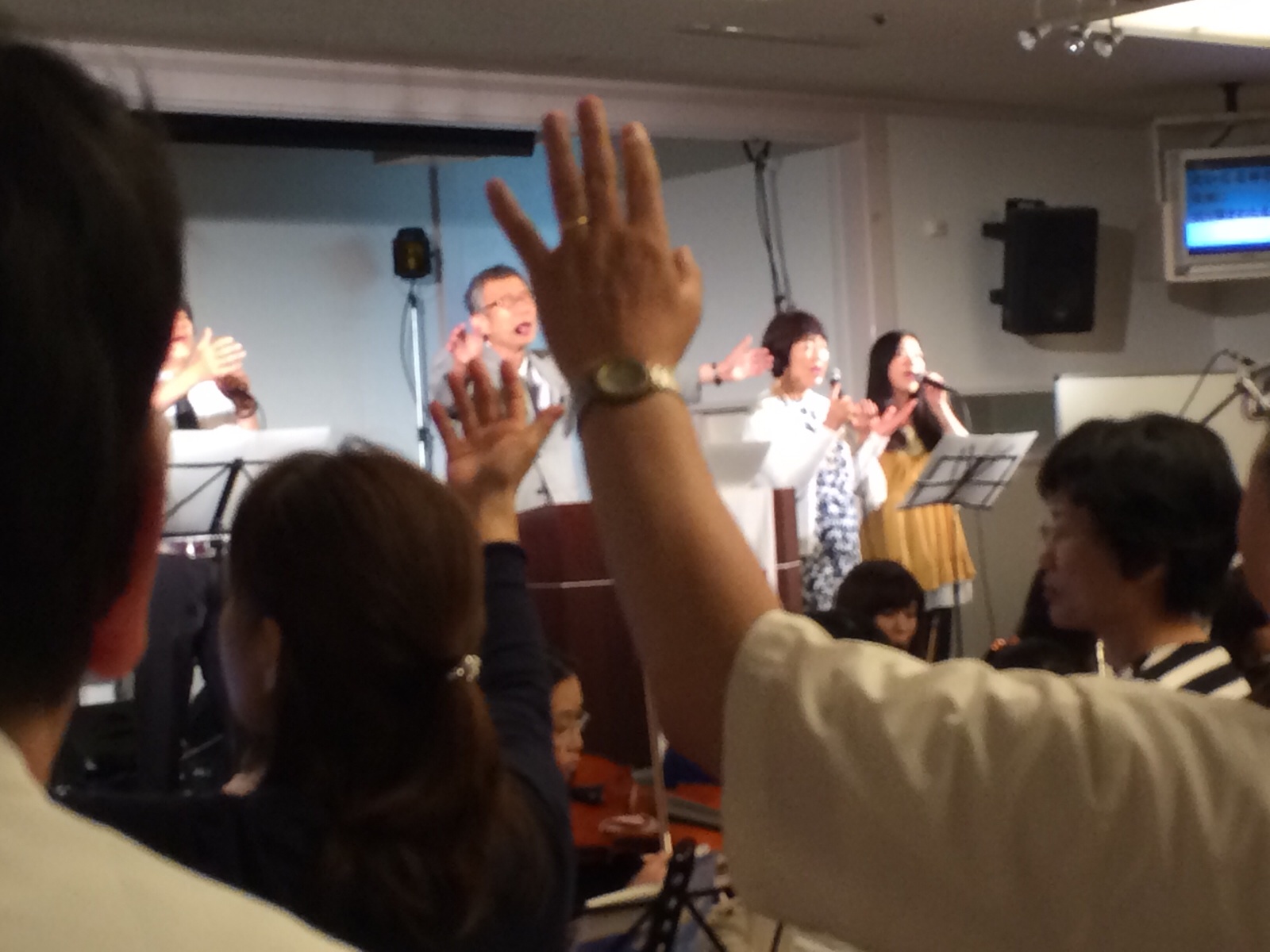 東京アンテオケ教会の牧師である秋元さんが導かれる賛美の時です。