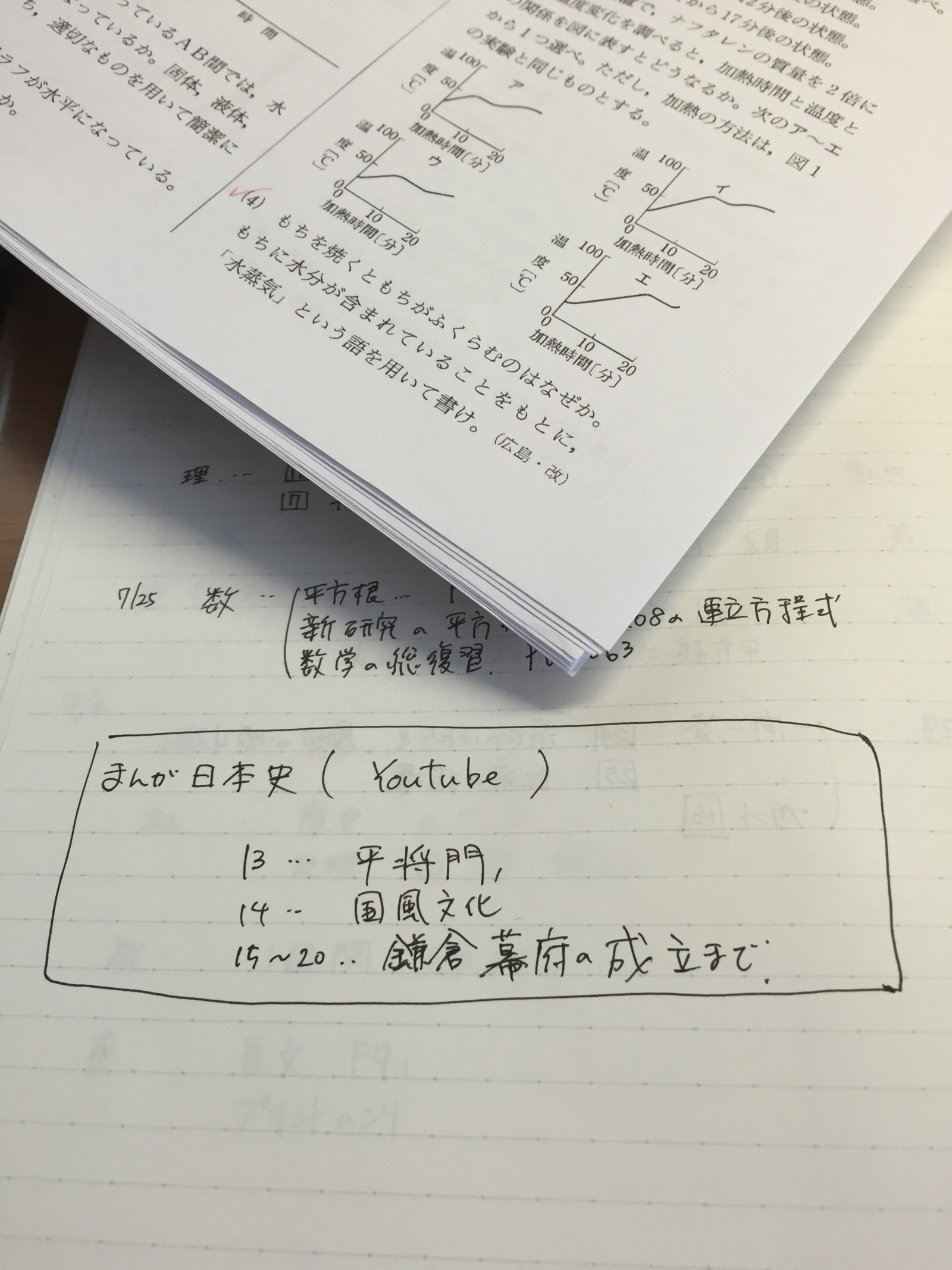 午前から仕事! まずは、高校受験勉強だ! 今日のポイントは、鎌倉幕府成立までと、物質の状態変化だ! TrueVine M