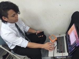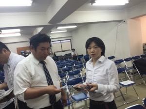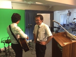 今日の特別賛美予定の星名さん。 ダビデさんと打ち合わせをしています。