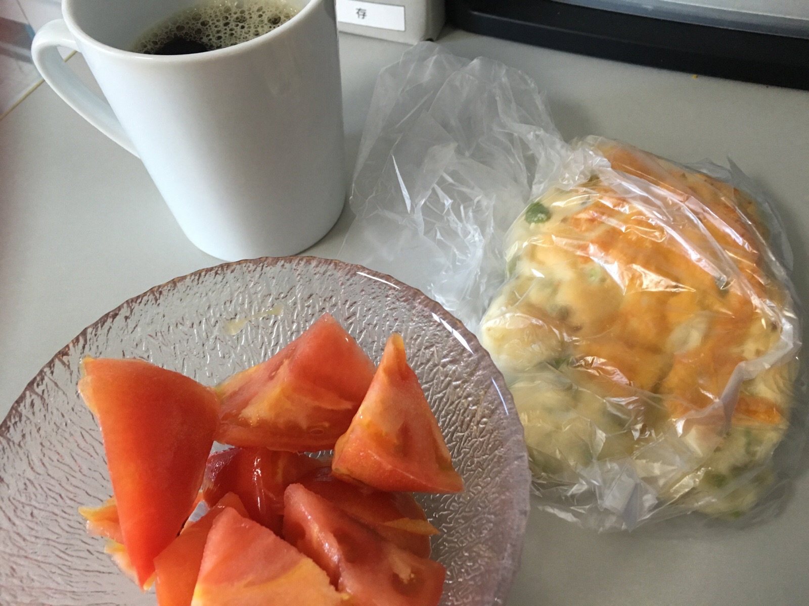 朝のパンを食べます。(^_^) Kayano