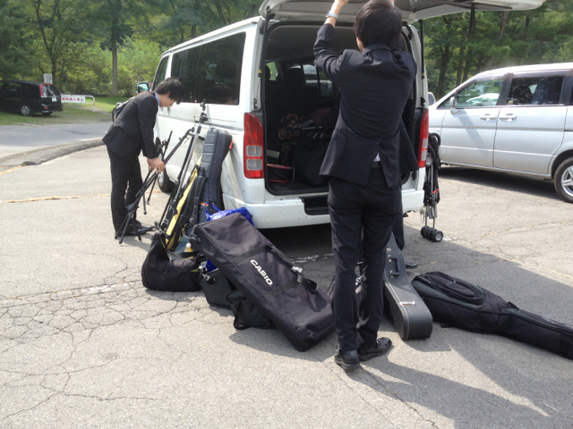 ブラジル人教会と合同礼拝です。 どこでも、設営部隊です!