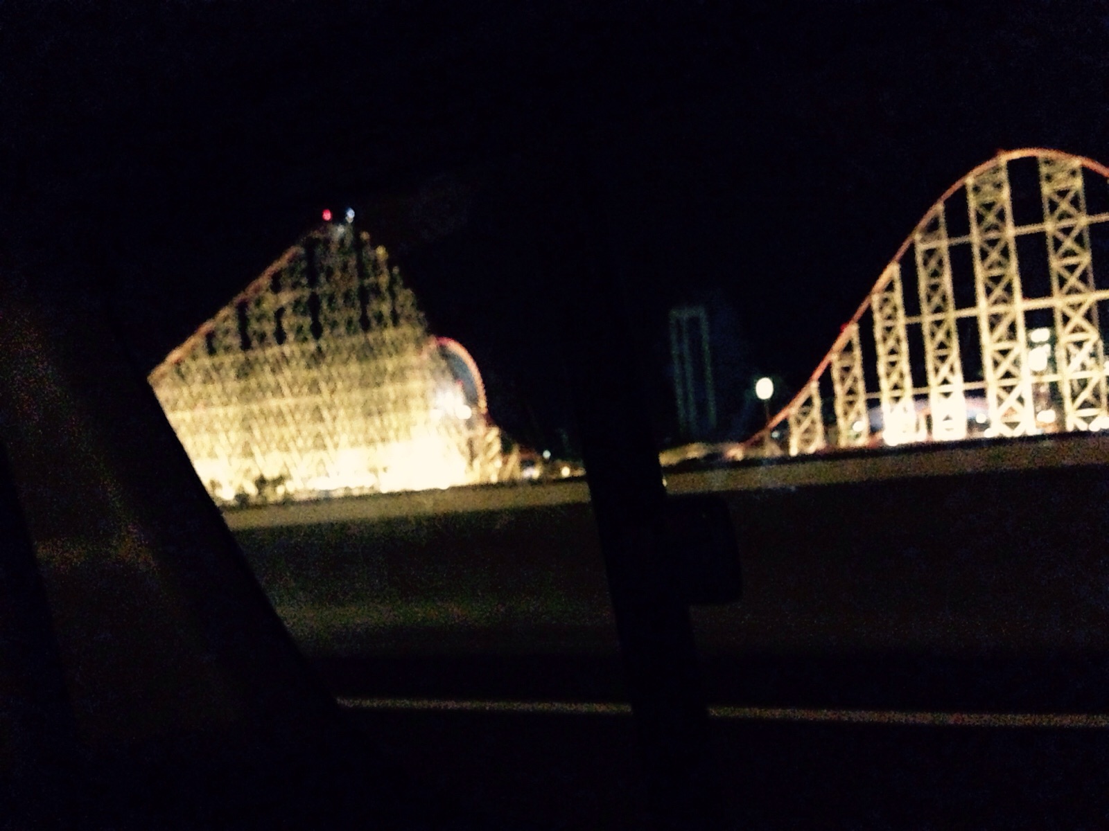 軽快に走り始めました。ナガシマスパーランドですかね?ジェットコースターのイルミネーションが綺麗です。 たくや