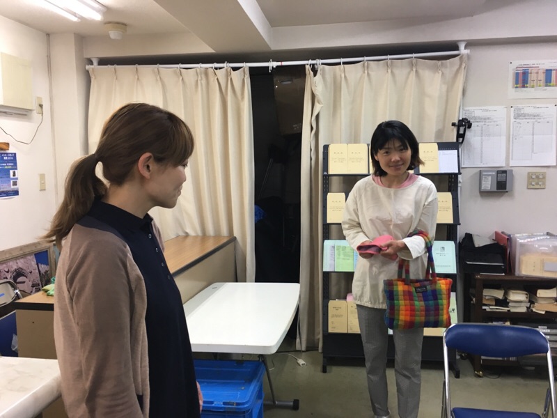 礼拝の後の交わり。 シオンさん、虹色のバッグが素敵です。