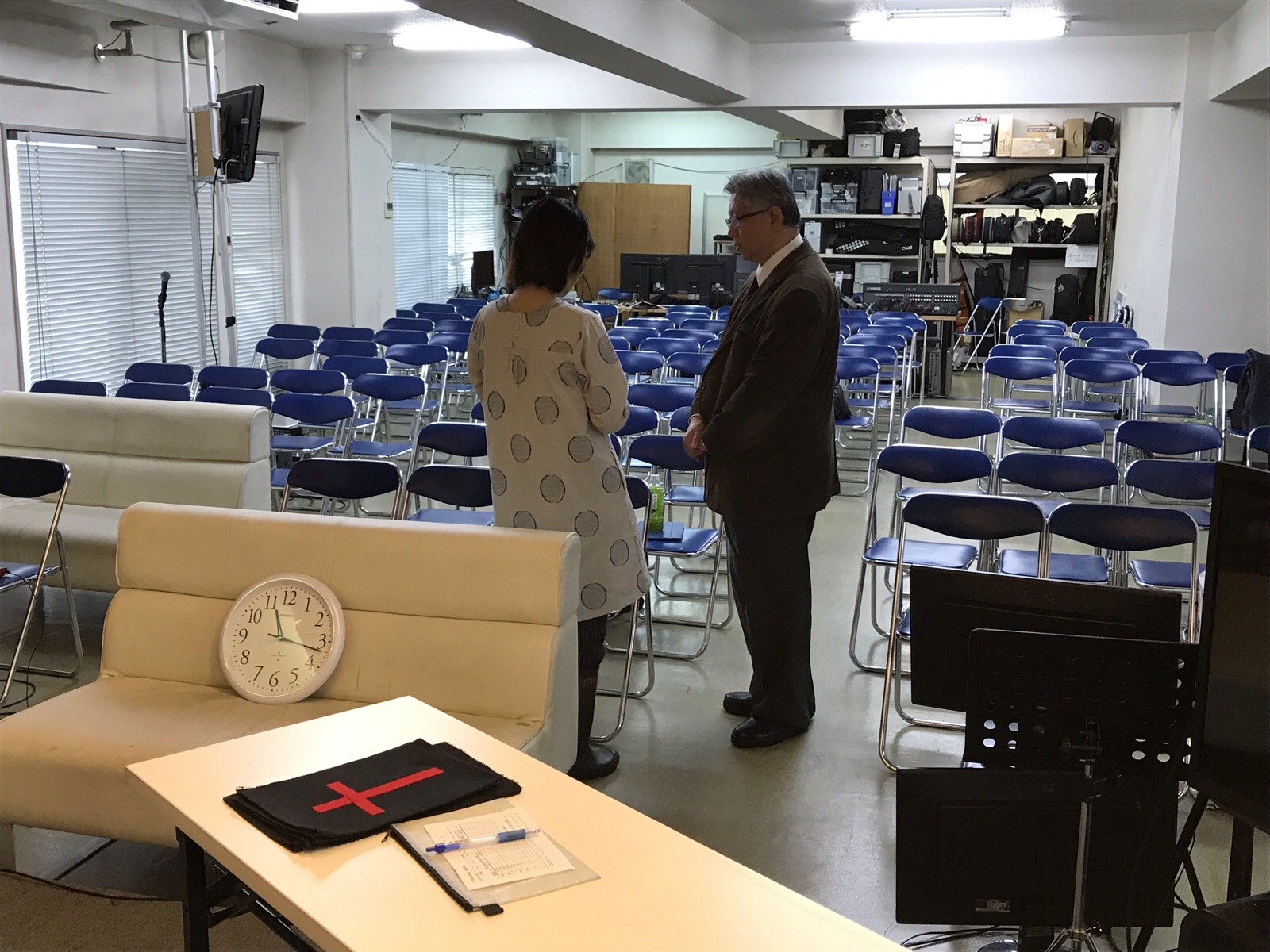 今日、礼拝に来られたクロちゃんと雑談しているチャチです。
