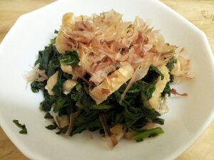今朝買った、大根の葉と油揚げの炒め煮が出来ました。 いただきまーす!