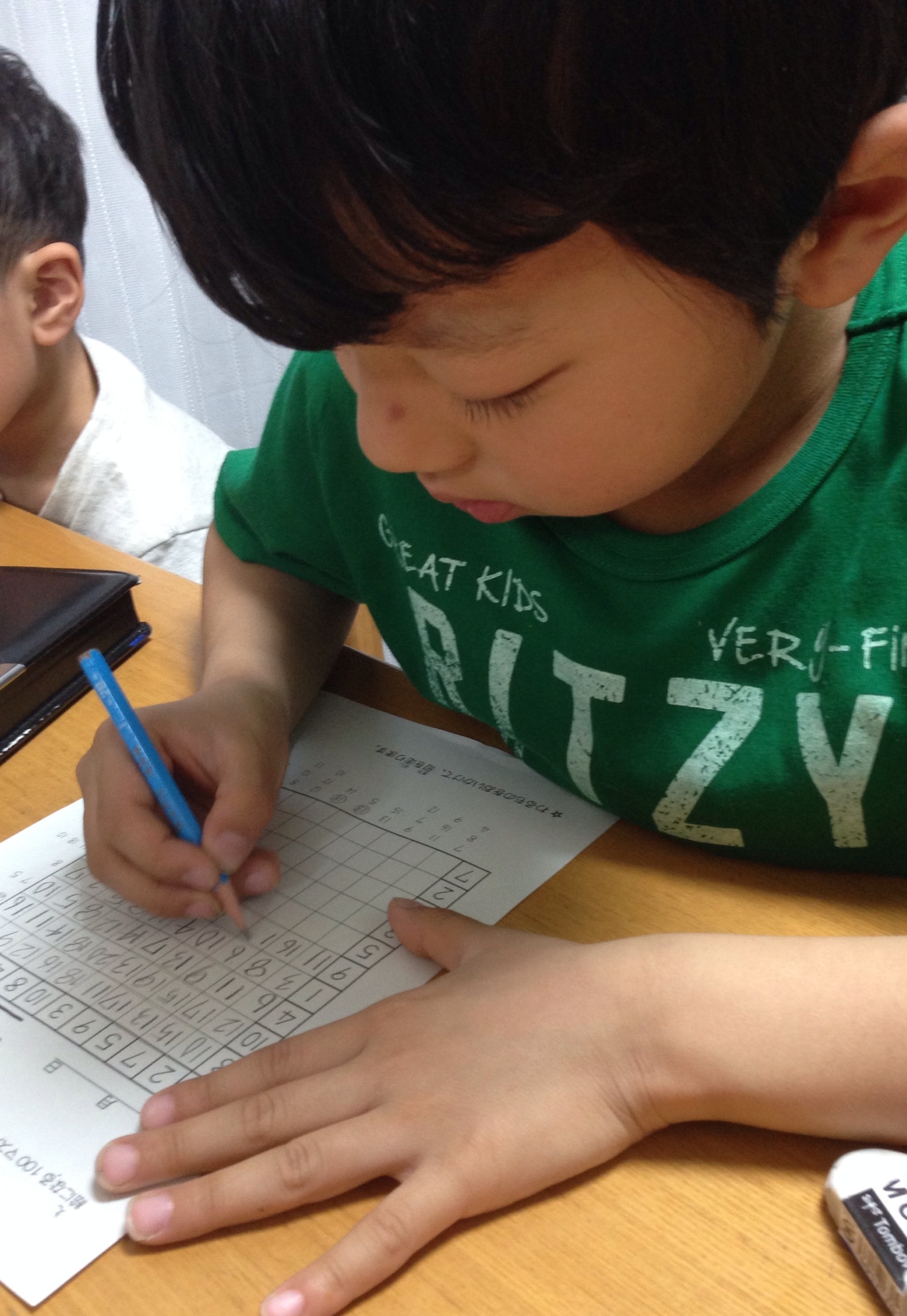 学校の宿題の百マス計算をする長男☆ タイムも計って、真剣です。 a.maeda
