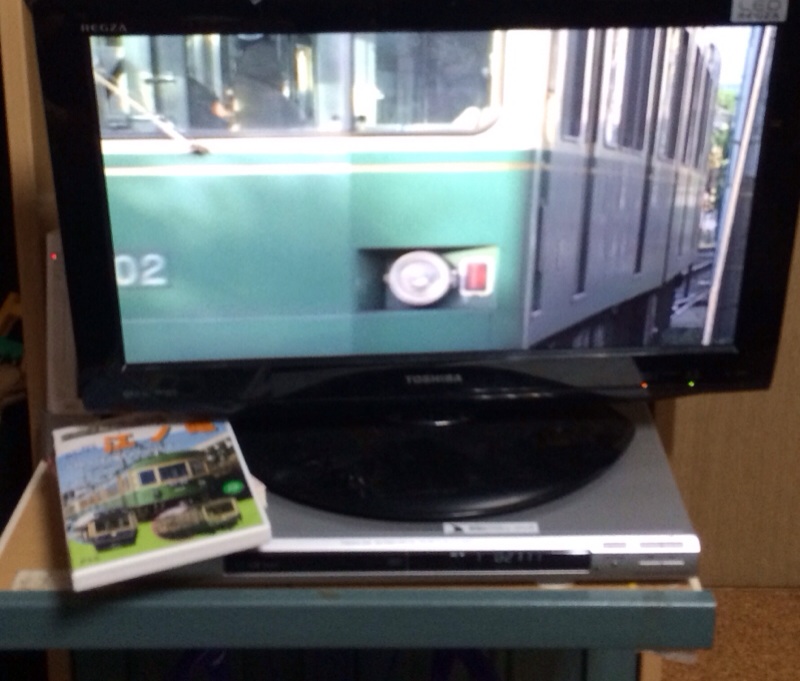 家に帰っても、江ノ電サブレ食べながら、江ノ電のDVD見てる息子(^^;; なんで、こんなに江ノ電男なんだ?