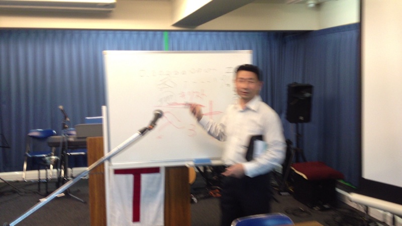 講師はエリヤ漆間牧師です。