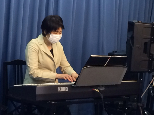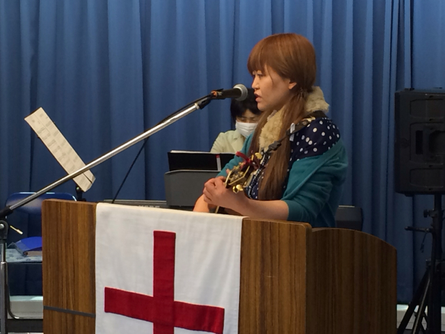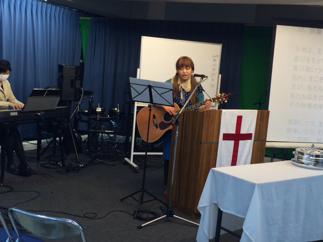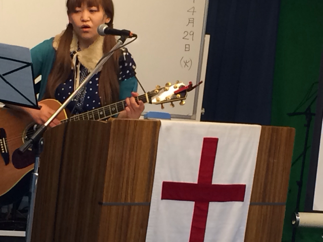 ギターで賛美リードしてるのは滝田由美ちゃん!