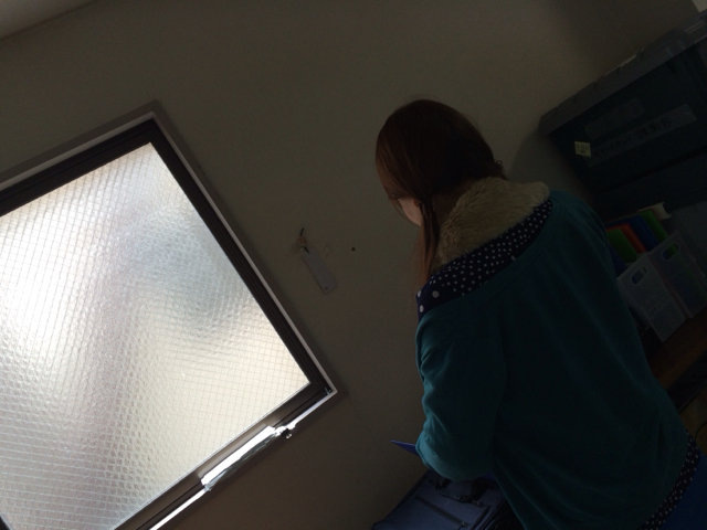 火曜礼拝の準備してます。 楽譜準備の由美ちゃん!