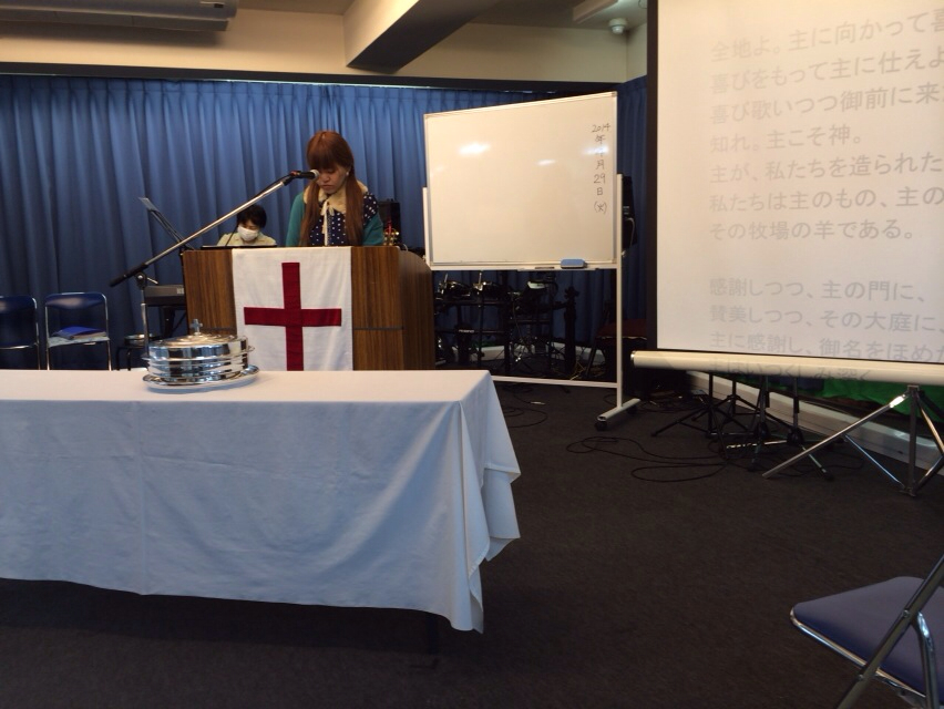 聖餐の準備している大野さん!