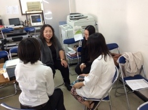 預言クラスの管理クラス前に窪田牧師と笠原牧師がお話中。 何やら盛り上がっています。