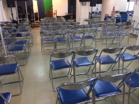 会堂の片隅をお借りしております。 私たちは、ヒソプという賛美グループです。