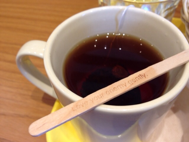 フレッシュネスの木マドラー、あなたの敵を愛しなさいって書いてある‼︎