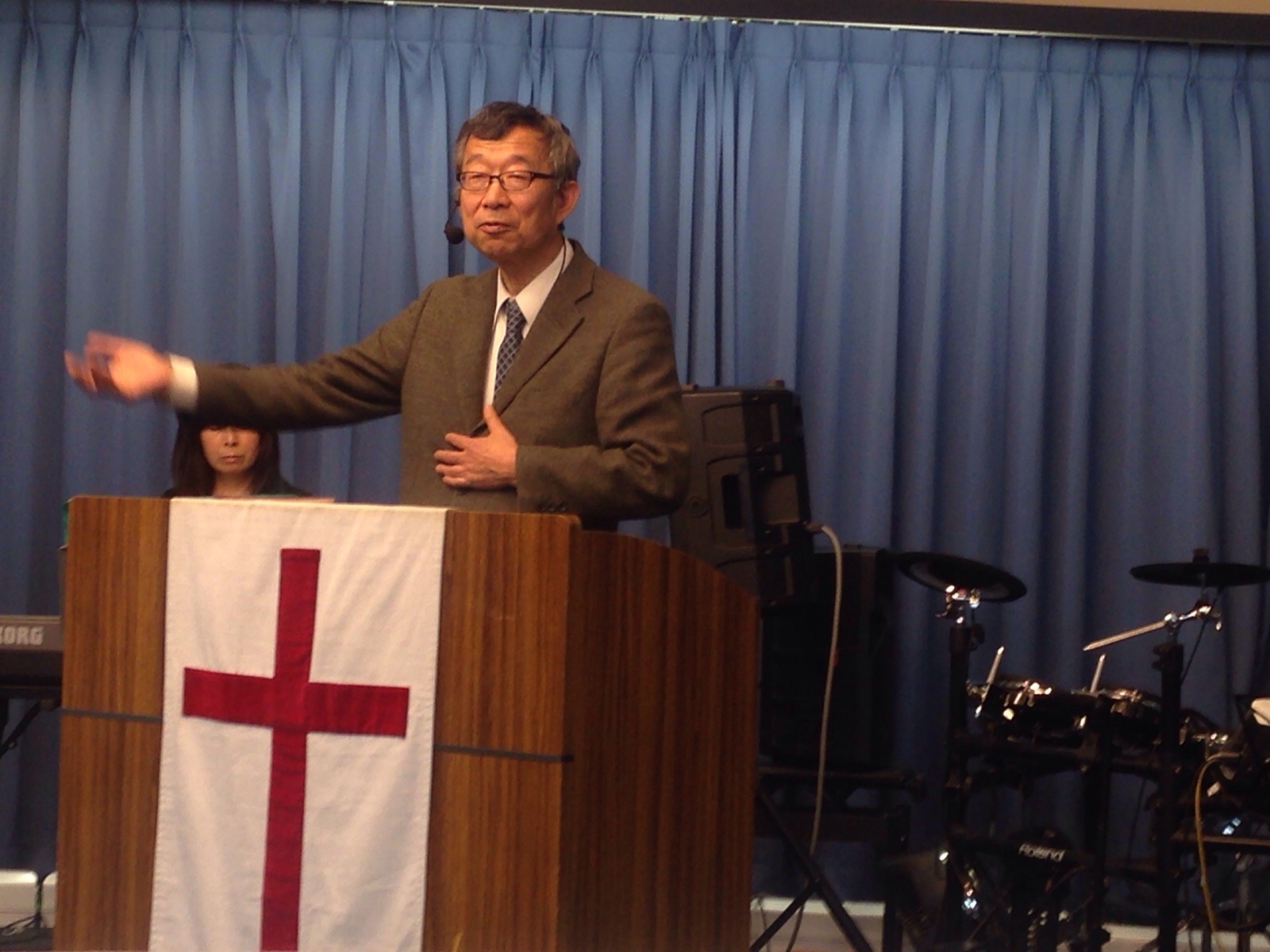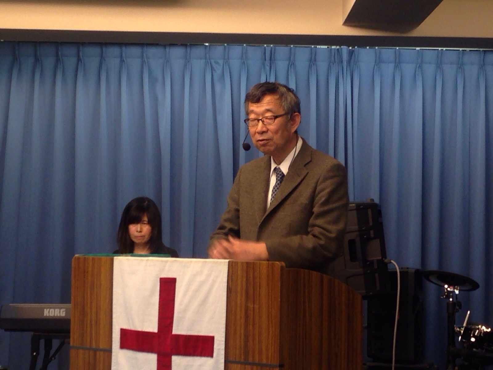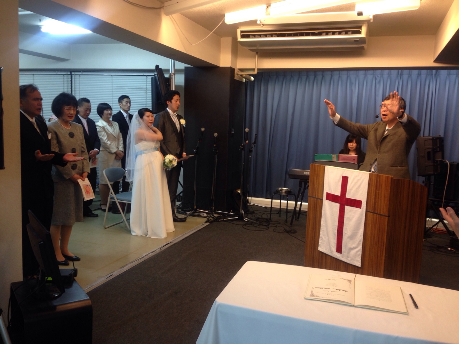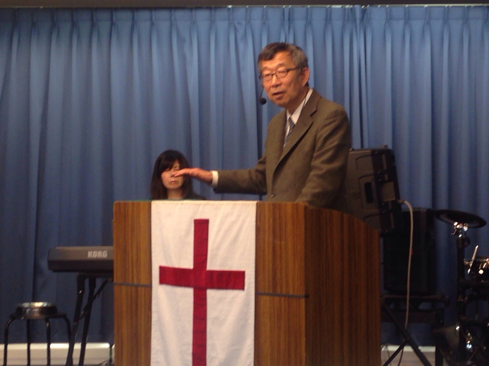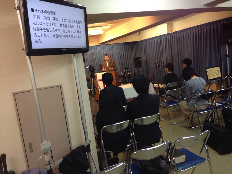 秋元牧師の後に続いて、みんなでイエスさまを信じる祈りを祈ります。