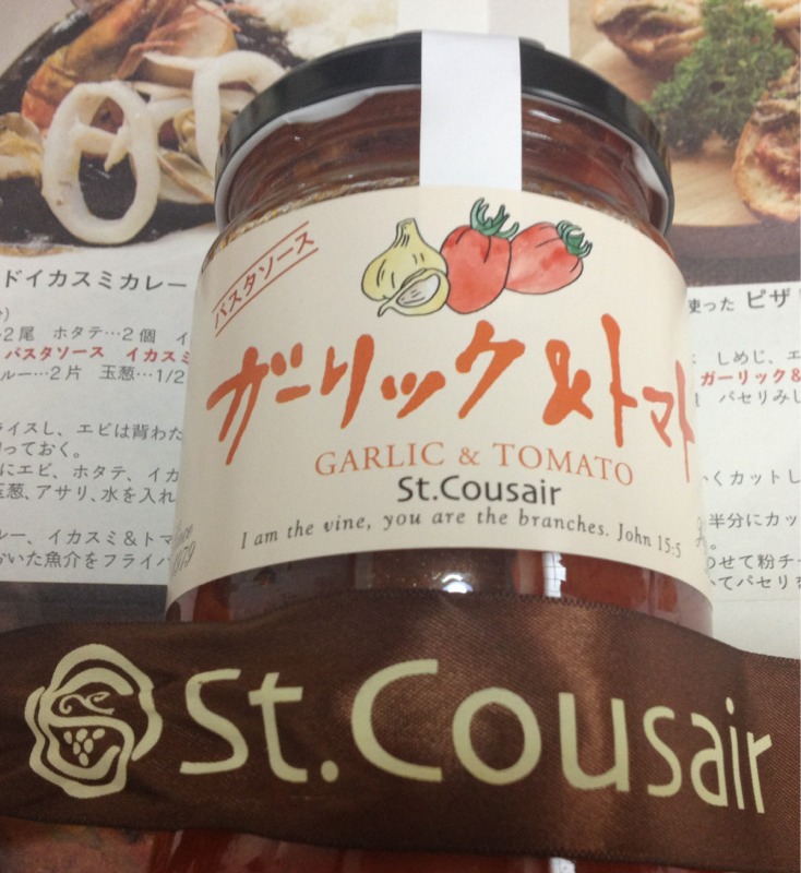 パスタソースをいただきました! ヨハネ15:5の聖書のことばが…書かれています。今日の夕食は…パスタとサラダに決定! amagai
