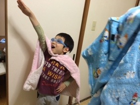 お風呂に入るよー と声をかけたら、水中メガネをかけて変身してました。 どうやら今日は水中メガネをしてお風呂に入るようです… まじ母