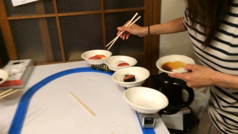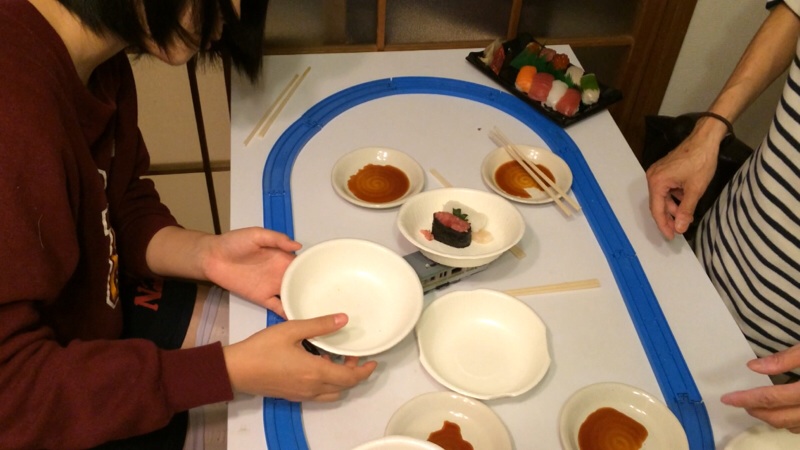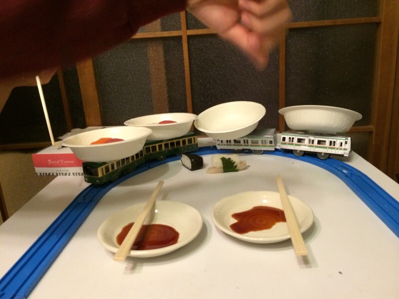 子供の日なので、プラレール回転寿司に挑戦。 果たしてうまくいきますか?
