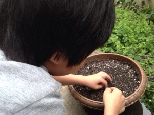 無事GETした鉢は、1・2年生の時の担任の先生から頂いた、お花の種を植えました。 fujita
