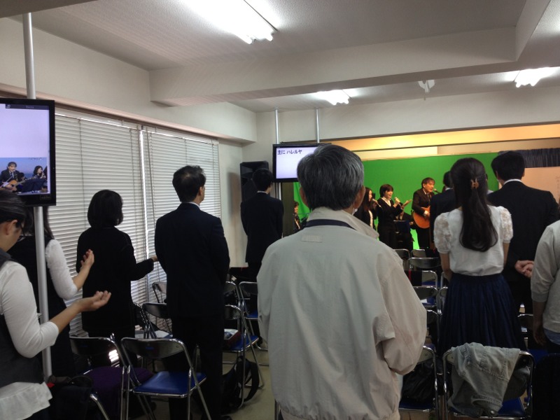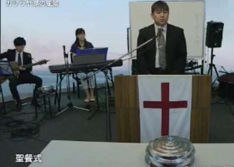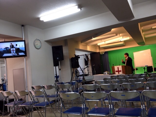 ダビデ前田牧師がメッセージ!反対側の席にはたくさん人がいるんです。