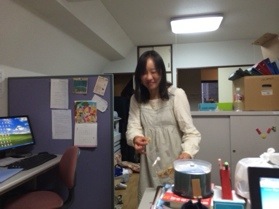 外部渉外の仕事に来た清水さん。しかし、その前にお菓子を食べて腹ごしらえ? ミカエル