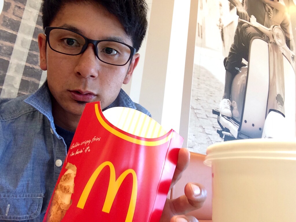 資材を買いに出てます。空腹&今日はお弁当が無いので1人マック! サムエルさん、人前での自撮りってヤッパリ恥ずかしいですね。恥ずかしくて無表情になっちゃいました オンライン会員 四日市 セイゴ