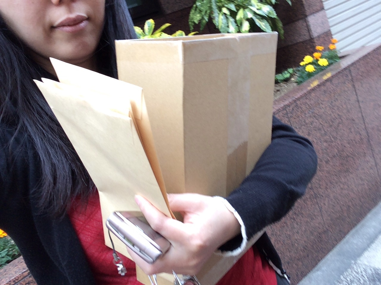 注文が落ち着いたので、請求書と発送するもの持って外に出たら、宅急便のお兄さんにばったり。持って行ってもらえました〜!