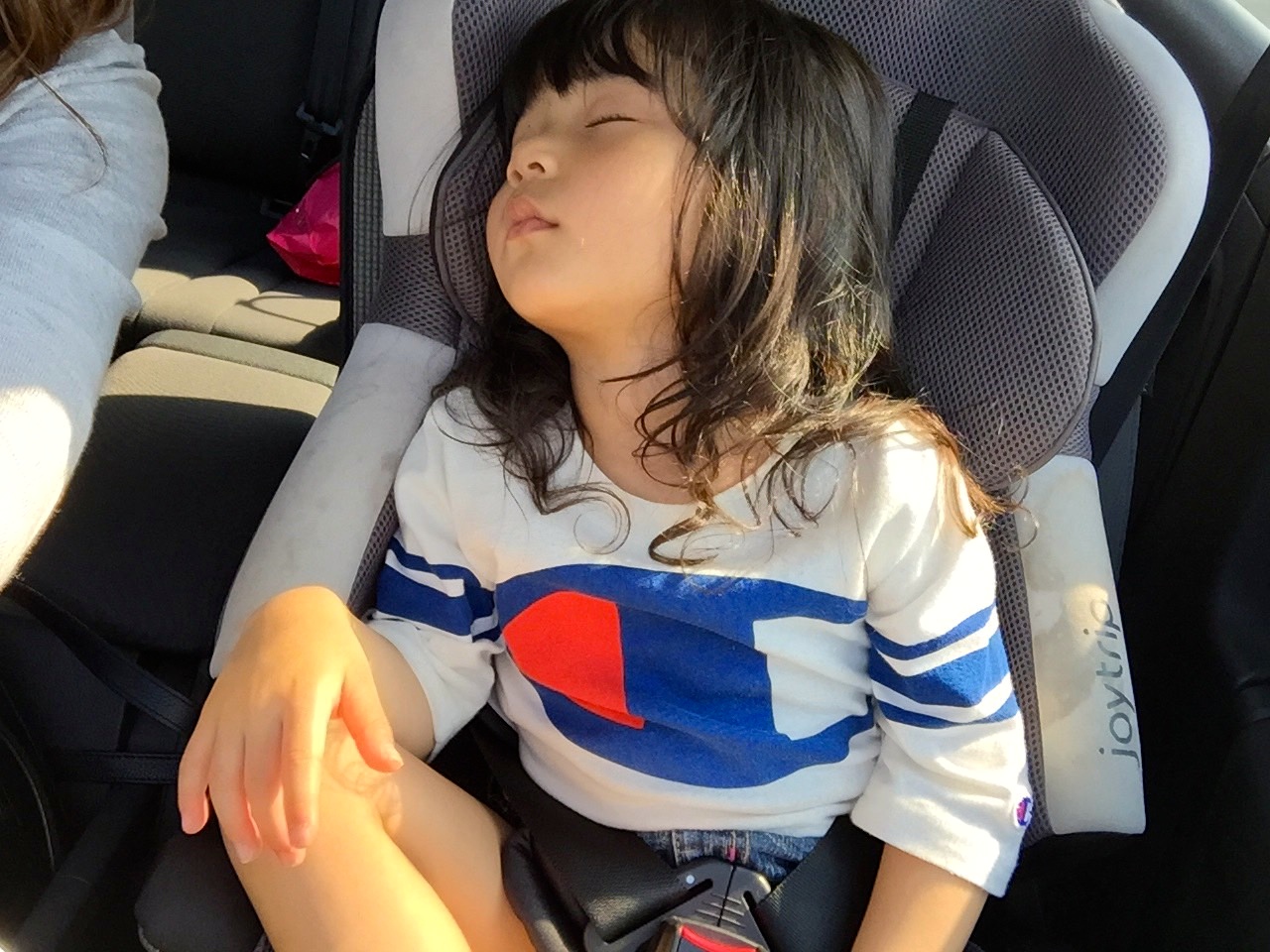 美梨愛もよほど楽しかったのか、車に乗ったらすぐに爆睡したようです♪ オンライン会員セイゴ