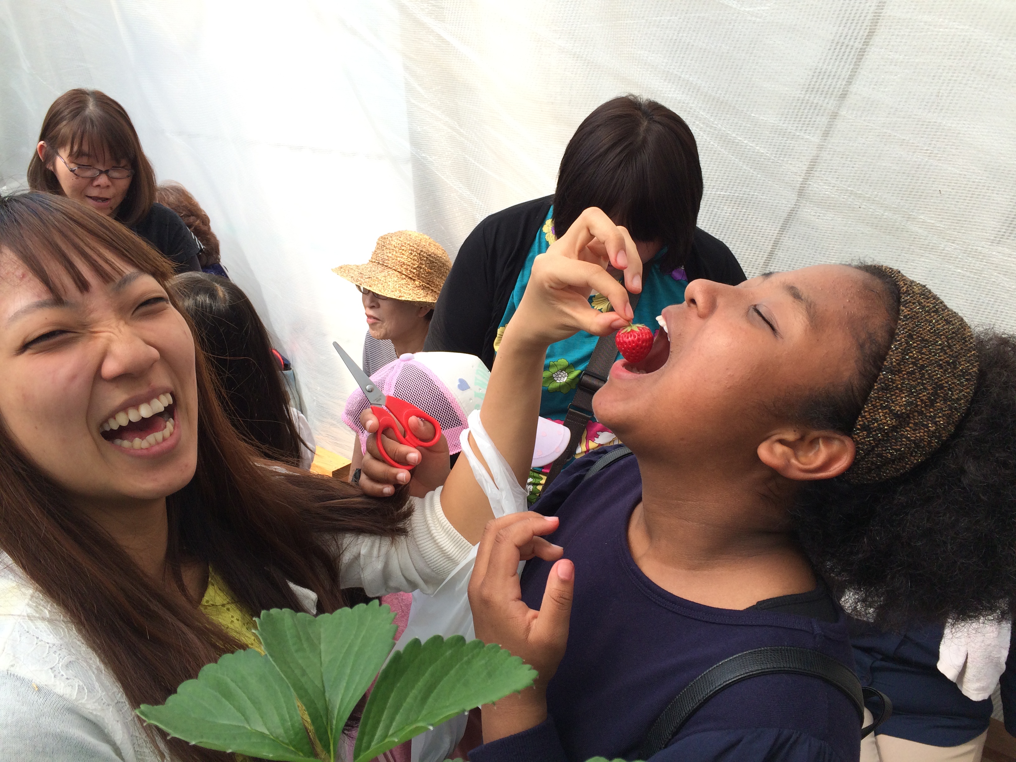 イチゴ狩りスタート! みさきチャンに食べさせてもらってる甘えん坊のエッちゃん(笑) オンライン会員せいご